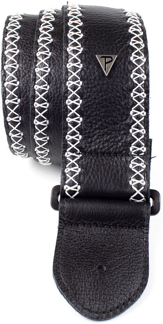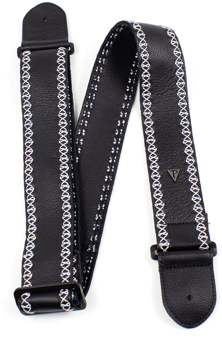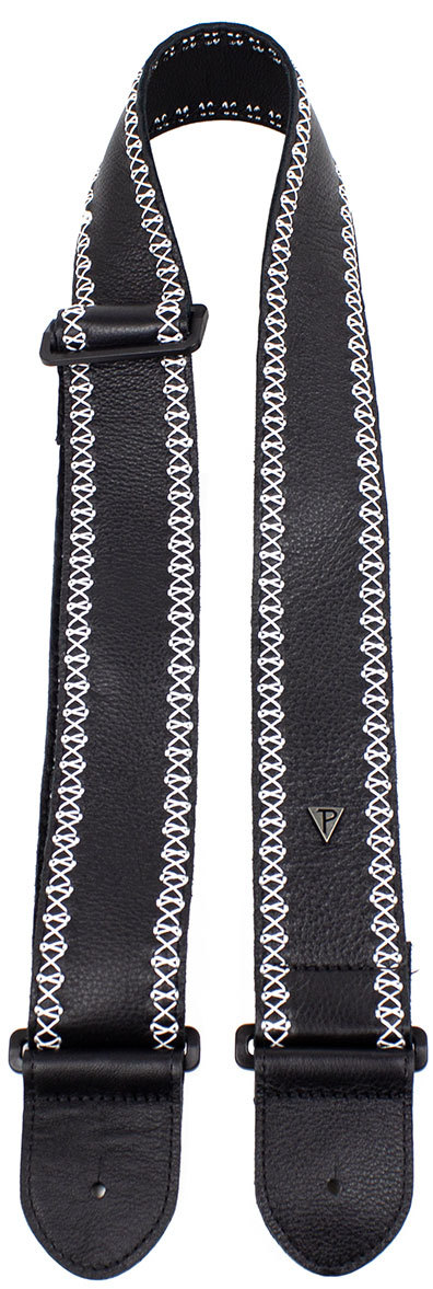 Мягкая черная перчаточная кожа 2,5″ сверху и сзади с белым фантазийным узором. Регулируемая длина от 35″ до 61,5″