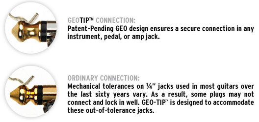Как правило, ненадежность разъемных соединений на 1/4 дюйма вызывается нарушением механических допусков. В поисках очередного инновационного решения Planet Waves разработала запатентованную конструкцию разъемов GEO-TIP, выпускаемых в сотрудничестве с компанией Neutrik на современном заводе в Лихтенштейне. Уникальная форма разъемов GEO-TIP обеспечивает надежное соединение любых инструментов, педалей и усилителей.