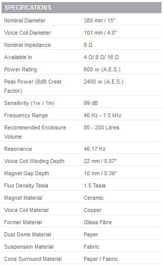 PRECISION DEVICES PD.1550 Динамик 15”/600 Ватт/4/8/16 Ом/40Гц-2,5кГц/99дБ