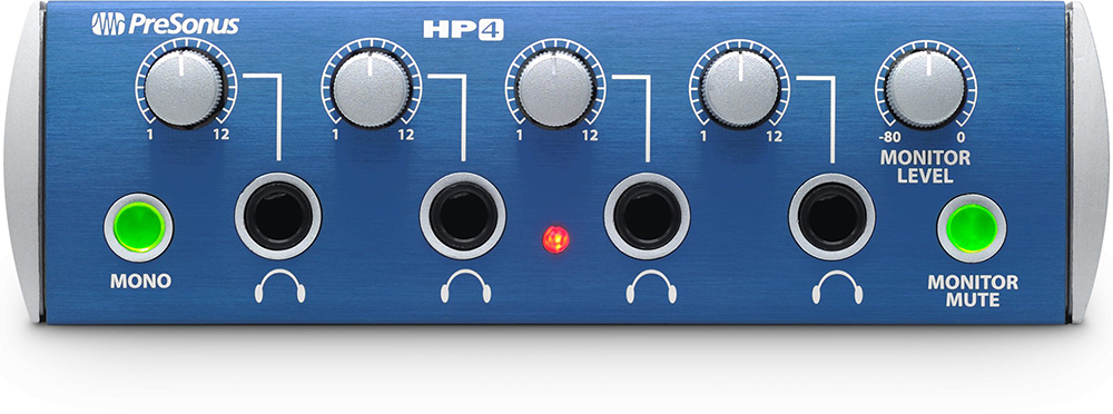 Presonus HP4 4х канальный усилитель для наушников (150 мВт на канал), 2 TRS гнезда для подключения мониторов, 20гц-20кгц, THD+N 0,0025%, размеры 140х149х44,5 мм, вес 1,54 кг