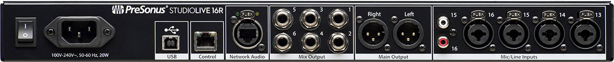 PreSonus StudioLive 16R цифровой микшер/стейджбокс 18 каналов + 4 возврата, 18 аналоговых входов / 8 выходов, 2 FX, 6 MIX, 2 AUX FX, USB-audio, AVB-audio