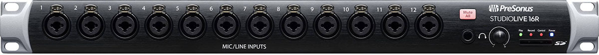Модели 32R и 24R отличаются только количеством аналоговых входов и выходов, а по внутренним возможностям одинаковые и полностью соответствуют консольным моделям StudioLive Series III. Исключение составляет только модель 16R, имеющая более скромные возможности. К особенностям рековых моделей StudioLive Series III R относится кнопка Mute All, способная оперативно отключить сигнал со всех аналоговых входов.
