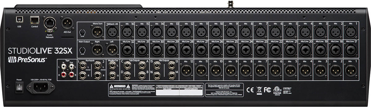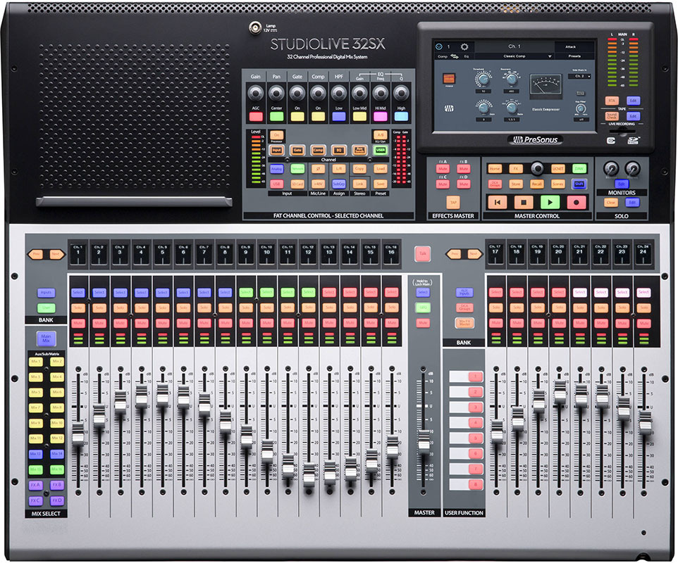 PreSonus StudioLive 32SX цифровой микшер, 38 каналов + 8 возвратов, 24+1 фейдер, 38 аналоговых входов / 27 выходов, 4FX, 4 GROUP, 16 MIX, 4 AUX FX, USB-audio, AVB-audio, AES/EBU out