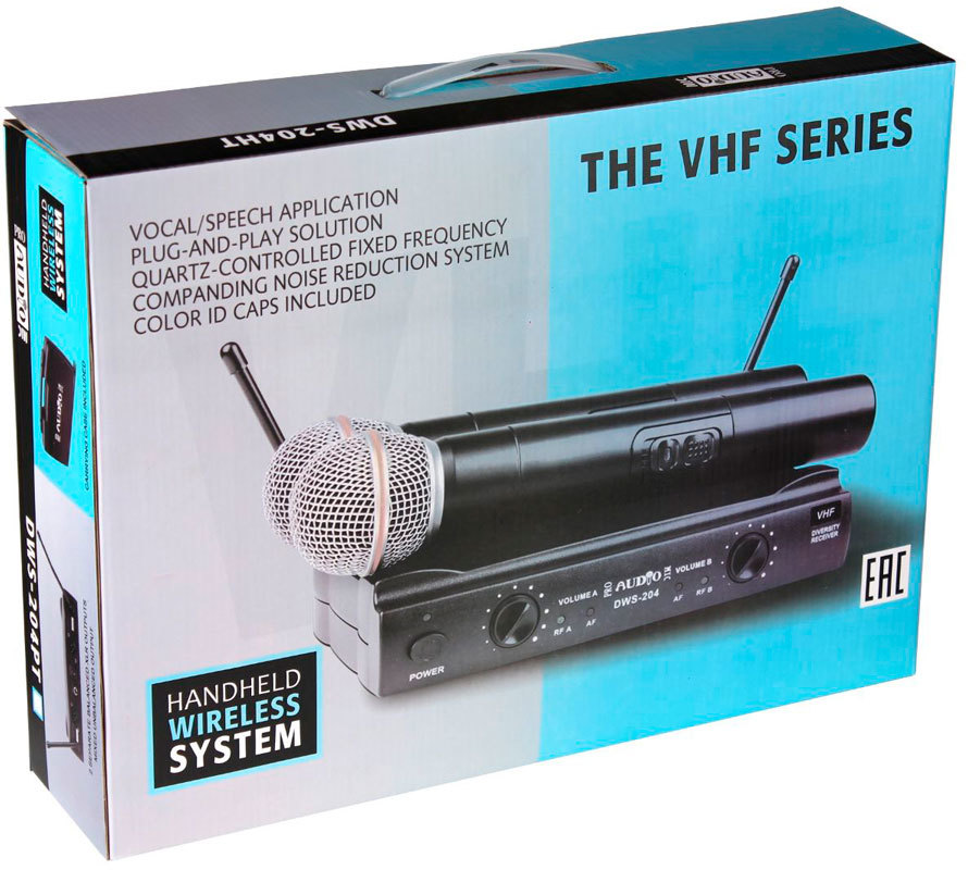 PROAUDIO DWS-204HT - радиосистема с двумя вокальными микрофонами, фиксированная частота, VHF 234-267 МГц, пластиковый кейс