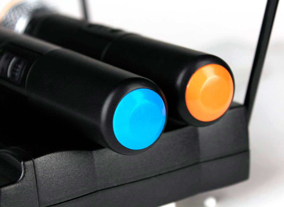 - Цветные колпачки и резиновые кольца на защитной решеткe для визуальной идентификации передатчиков