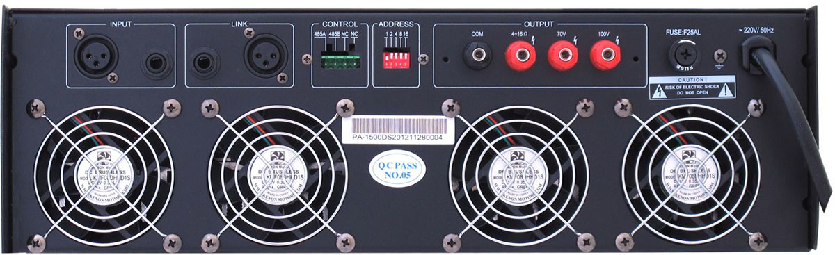 Работает в трех режимах: 70, 100 В со стандартной акустикой на 4-16 Ом. Снабжен защитой от короткого замыкания на выходе, перегрева, перегрузки, а также системой «мягкого старта». Также усилитель снабжен LCD дисплеем, отображающим температуру внутри корпуса и уровень громкости.