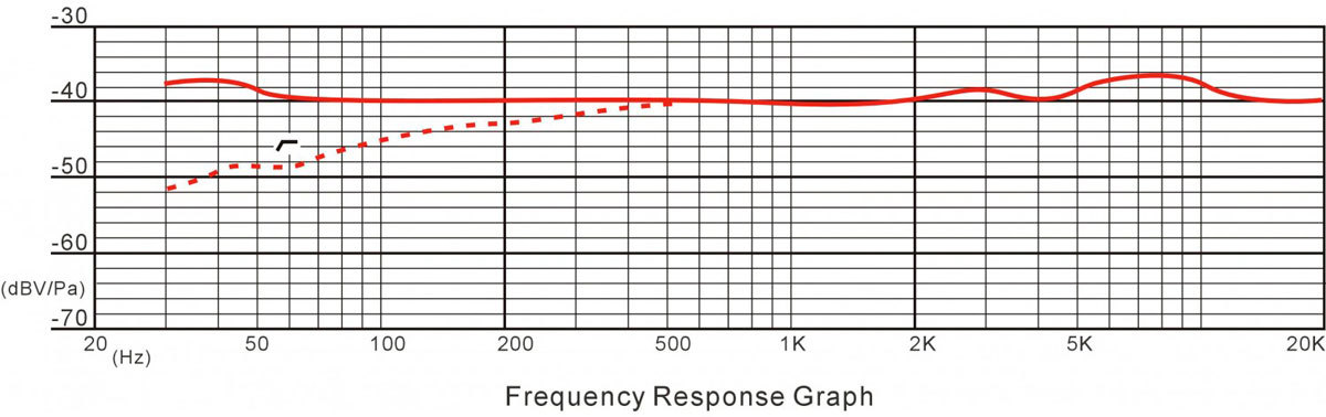 - Чувствительность: -38 дБ ± 2 дБ (0 дБ = 1 В / Па при 1 кГц).