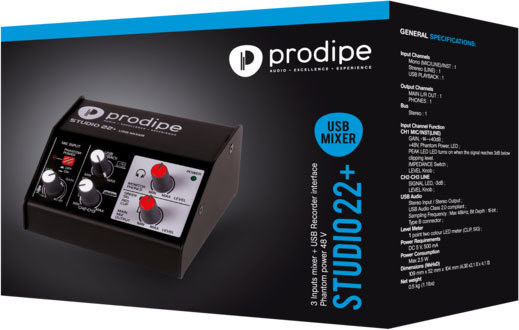 - Новый Prodipe Studio22+ - это первоклассный аудиоинтерфейс для Mac и ПК. Он поставляется с USB-ЦАП (цифро-аналоговый преобразователь) и драйвером Prodipe, ASIO 2, для почти нулевой задержки (менее 1 миллисекунды).