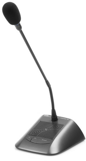 Proel PA BMDD Настольный микрофон делегата конференцсистемы CONFD. Конденсаторный микрофон гусиная шея на пластиковой подставке, встроенный мониторный динамик, выход для наушников, кнопка включения микрофона. В комплекте: соединительный кабель 2м
