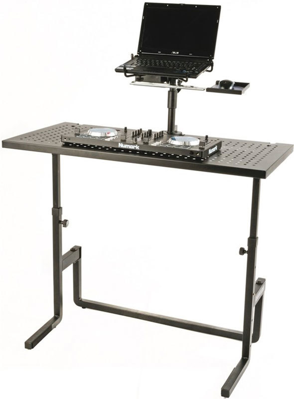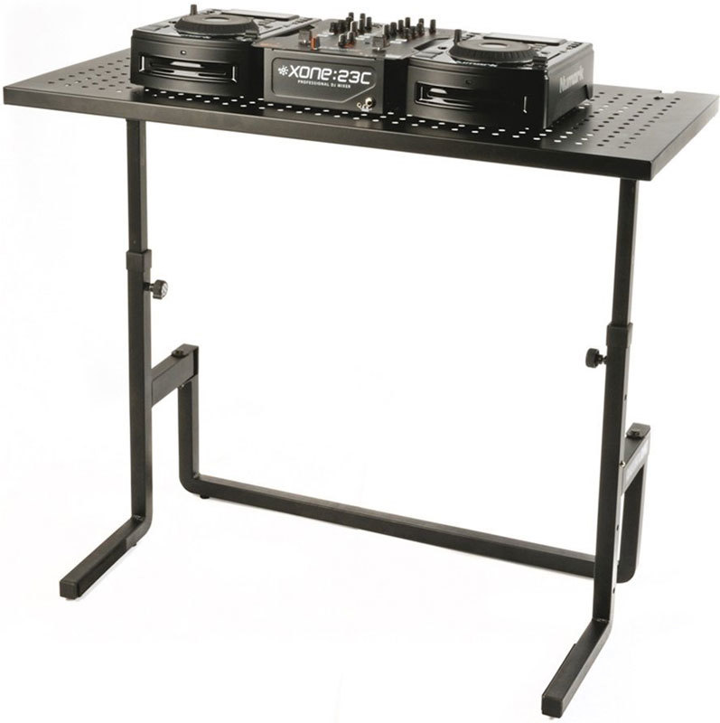 Удобный стол QUIK LOK DJ233 для диджейского оборудования. Конструкция представляет собой перфорированную рабочую поверхность 100 на 49 см на устойчивых ножках. Высота регулируется в диапазоне от 64 до 97 сантиметров. Цвет черный, вес 12,5 кг.
