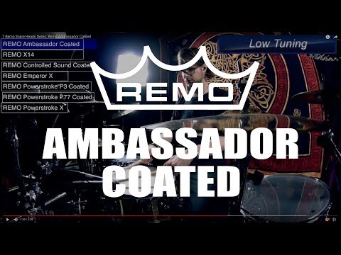 Coated Ambassador по характеристикам звучания во многом совпадает с Clear Ambassador, но в его звуке добавляется большая теплота и мягкость, а при высокой настройке эти пластики Remo Coated Ambassador дают четкий красивый тон, что является важным условием для исполнителей джазовой и латиноамериканской музыки.