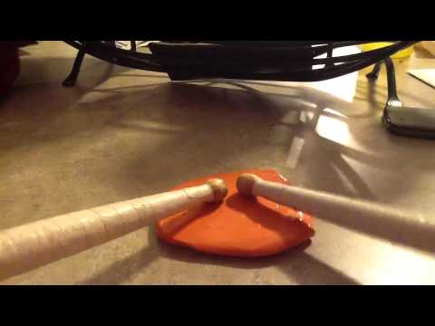Наверное, это самая бредовая и в тоже время весёлая штука. Remo putty Pad напоминает некое подобие жвачки для рук. Возможно это и есть Неньютоновская жидкость все подробности точно не знаю, но по ощущениям очень похоже. Мнется и растекается при легком воздействие и становится плотным при сильных ударах что создает отскок. В принципе это очень крутая идея. Такую небольшую баночку можно взять куда угодно и потренироваться в любом месте. Это гораздо дешевле чем тренировочный пэд. А ощущение практически такое же. Если очень скучно, можно её подавить, как хендгам. В общем очень полезная вещь.