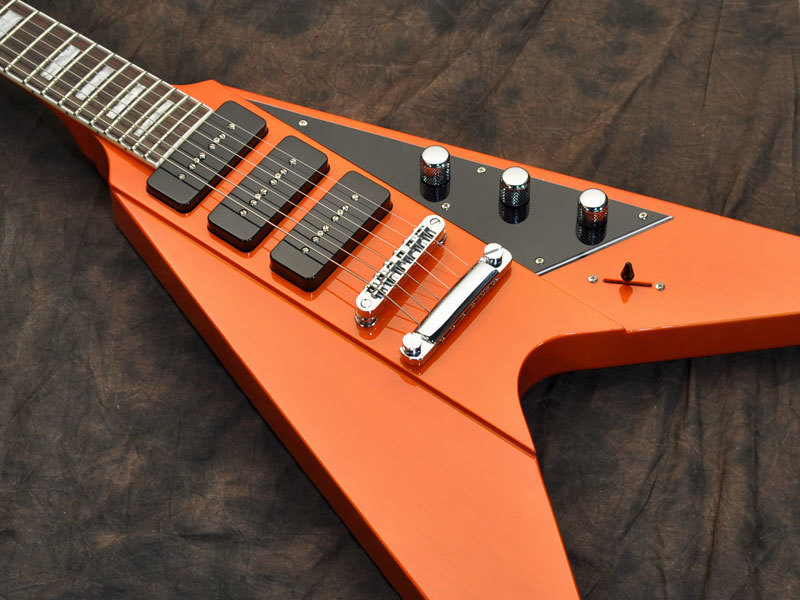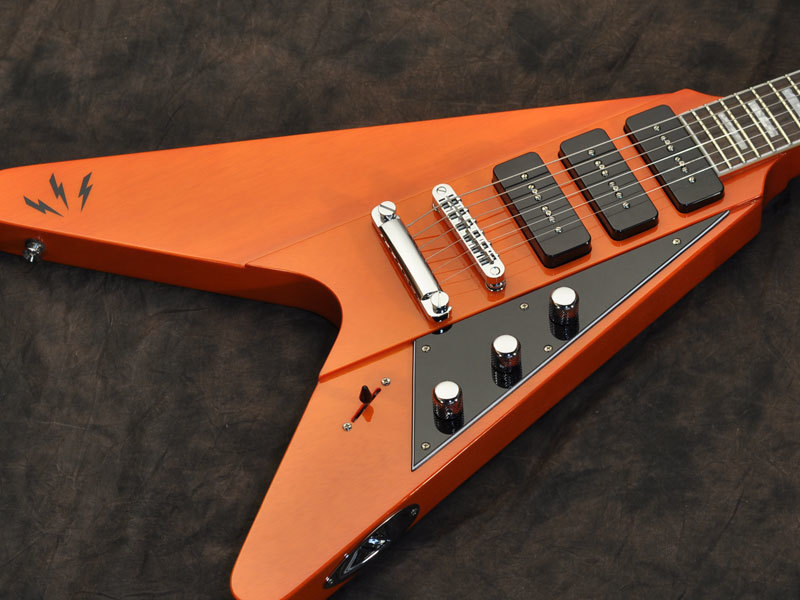 Инструмент, созданный с любовью. Никогда не питал чувств к V-подобным гитарам, но здесь настолько эстетично уложены винтажность и агрессия спорткара. Инструмент выглядит простым и стильным, всё отточено и лишено современной вычурной угловатости. Чистый звук просто безупречно прозрачный, преобладает глубокий серединистый непробивной, но обволакивающий, тон. Три P-90 не дадут возможность рубить быстрые пассажи, но отлично раскрываются на дум-композициях даже в низком строе. Установлена отличная фурнитура, локовые колки работают как надо. Редкий и необычный инструмент, отлично подходит для небольшой коллекции.