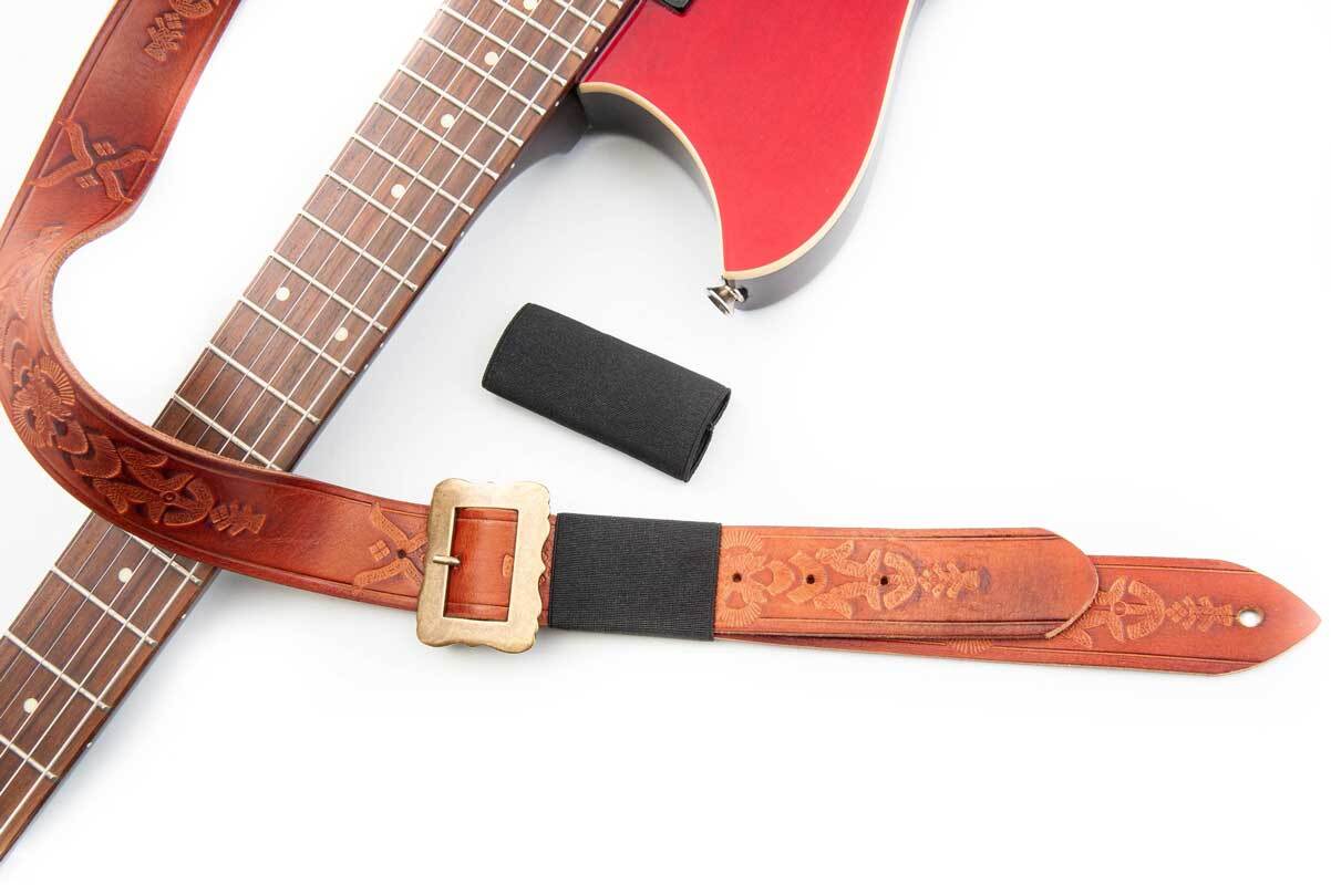 Ну, это ремень, так давайте превратим его в гитарный ремень..... Команда дизайнеров адаптировала нашу оригинальную систему регулировки длины RAS к задней части ремня, чтобы обеспечить более широкий диапазон регулировки, так что он не такой тугой, как нам показалось, и, конечно же, мы добавили отверстия для крепления гитары.