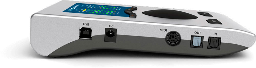 - С помощью переключателя +19 / +4 дБу, расположенного на днище интерфейса можно с легкостью уменьшить уровень выходного сигнала. Это улучшает соотношение сигнал/шум при работе с чувствительными активными мониторами, предотвращает появление искажений / перегрузок и помогает поддерживать фейдеры TotalMix FX около 0 дБ взамен высоких аттенюаций