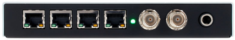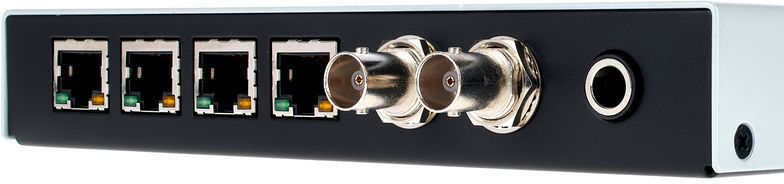 Именно поэтому RME предлагает свой вариант Dante интерфейса, c чипом FPGA, где в реальном времени с нулевой задержкой производится управление маршрутизацией и сабмиксами в микшере RME TotalMix FX. Помимо этого, имеется выход на наушники, что позволяет прослушать сабмикс каналов не отходя от компьютера. Также есть word clock разъёмы, которые могут быть переключены в режим MADI. Это дает возможность пользоваться устройством как автономным конвертором MADI в Dante.