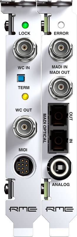 Входящая в комплект плата расширения имеет входы/выходы тактового генератора (BNC) и входы/выходы MIDI. Вход синхронизации слова гальванически изолирован через трансформатор и автоматически работает как с односкоростными, так и с двухскоростными сигналами. MIDI вход/выход предлагает два полностью независимых MIDI входа и выхода через разрывной кабель (4 гнезда DIN). Виртуальный MIDI-порт позволяет напрямую передавать MIDI-данные по MADI.