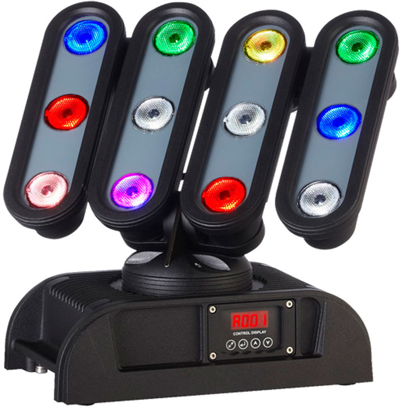 - Источник света: 4 подвижных линейки по 3 Cree MC-E RGBW мультичип-светодиода в каждой