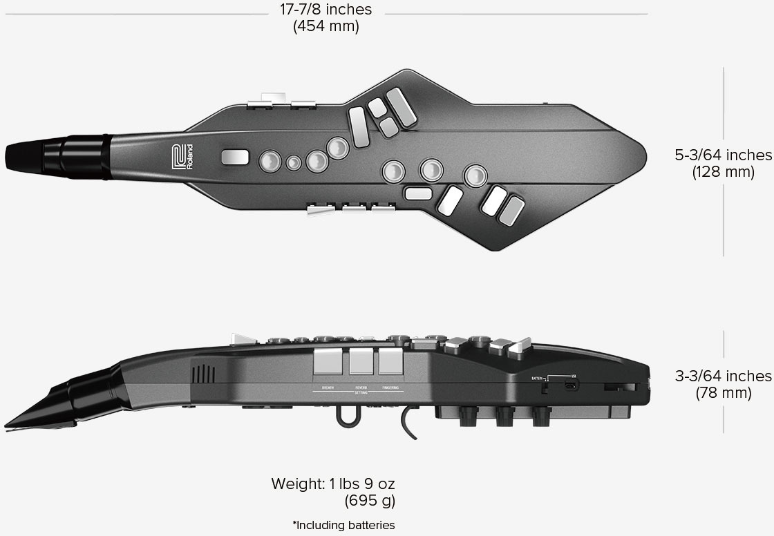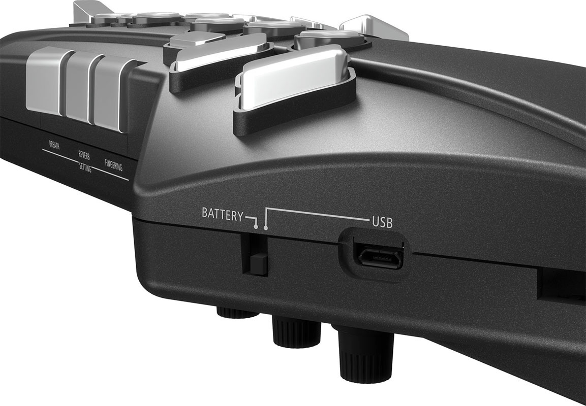 Компактность Aerophone GO и возможность питания от четырех никель-металлгидридных батареек формата АА снимает все ограничения на место, где можно использовать данный инструмент.