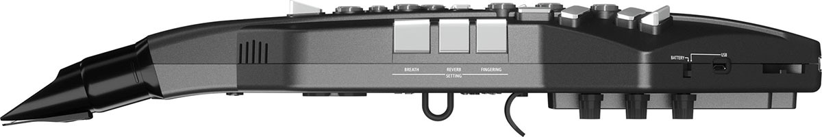Начнем с того, что он позволяет играть тембрами 11 экспрессивных инструментов, в том числе тембрами саксофонов различных типов. А благодаря тому, что инструмент предусматривает возможность питания от батареек и имеет встроенный динамик, делать это можно в любом месте.