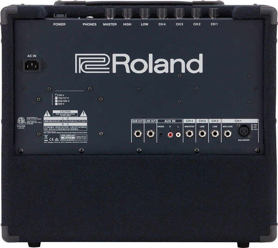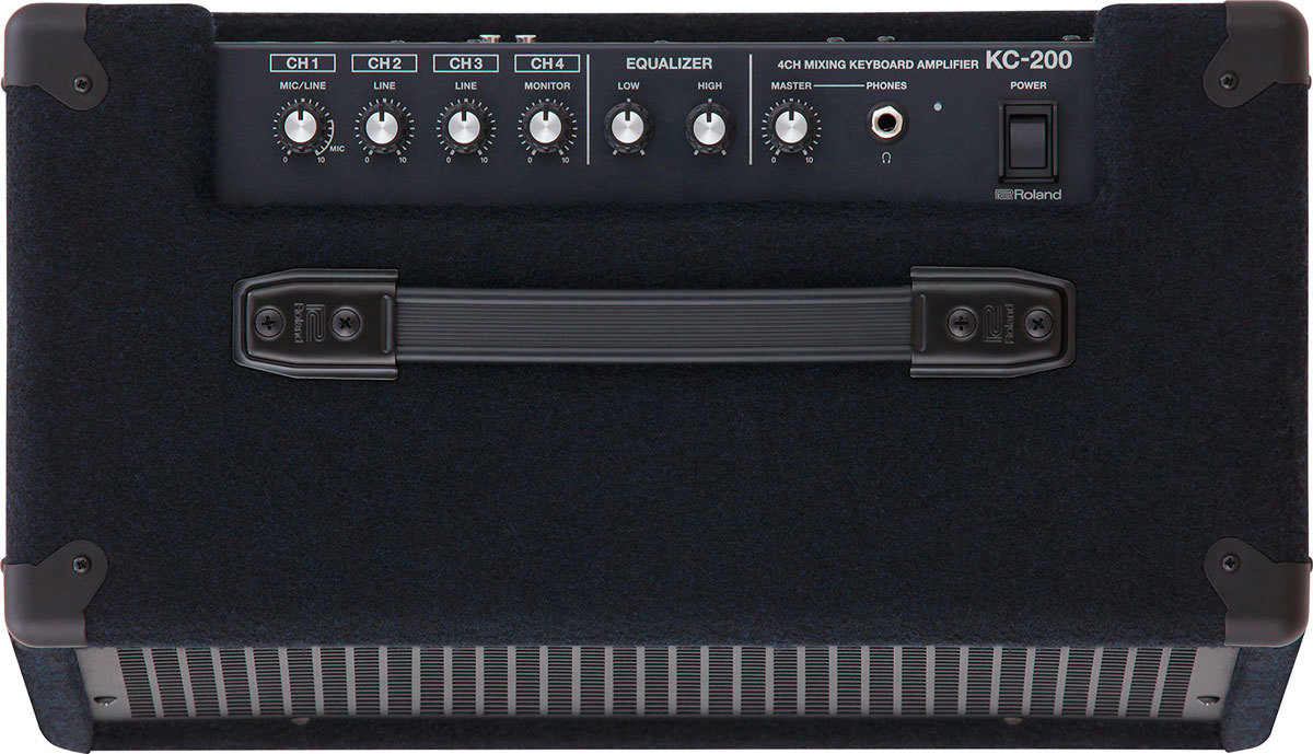 KC-200 — компактный комбо с полнодиапазонным звуком мощностью 100 ватт. Двойная фазоинвертерная конструкция кабинета, запатентованная компанией Roland, позволяет расширить диапазон воспроизводящихся без искажения низких частот. Модернизированная секция усиления КС-200 и усовершенствованный 12-дюймовый вуфер обеспечивают более качественное воспроизведение низов, что гарантирует превосходного звучания при усилении сигналов 88-клавишных сценических пианино, органов, синтезаторов, драм-машин и других электронных инструментов.