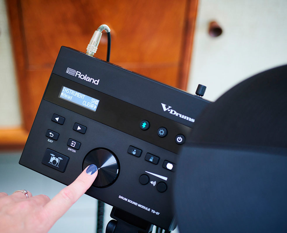 Просто сядьте за установку ударных и обнаружите множество пресетных наборов ударных, которые буквально заставят вас начать играть. А когда будете готовы к большему, погрузитесь в исследование огромной библиотеки звуков ударных ― меняйте малые барабаны, смешивайте томы, экспериментируйте с различными бас-барабанами, тестируйте крэши и райды. Можно даже настраивать ударные, добавлять демпфирование, чтобы сделать звук мягче, изменять акустику помещения, в котором располагается установка ударных, или стать на время звукоинженером и настроить звучание с помощью специализированных эквалайзеров звукового модуля TD-07.