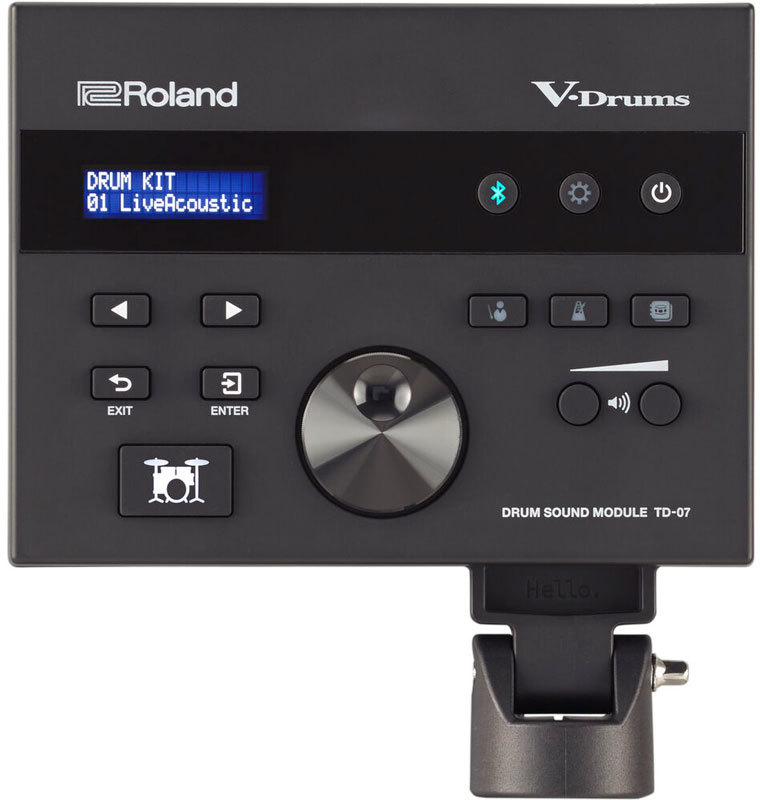 - Звуковой модуль TD-07 с 24 пресетными наборами ударных, 25 пользовательскими наборами ударных и 143 инструментами