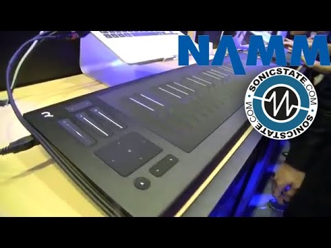 По причине того, что клавиатура Keywaves плавно перетекает от клавиши к клавише, вы можете реально скользить между нотами, как это делается на безладовых инструментах. Просто возьмите одну ноту, проведите пальцем вдоль Keywaves, и она будет двигаться вместе с Вами. Плоская поверхность перед Keywaves работает как ленточный контроллер, позволяющий брать ноты и скользить между ними.
