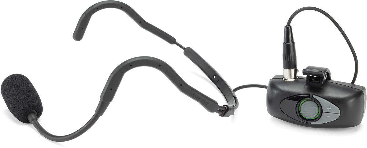 Система AHX Fitness Headset от Samson обеспечивает свободу беспроводной связи UHF с использованием самого маленького в мире накладного передатчика, в котором звук высокой четкости, встроенная перезаряжаемая батарея и 300' надежной работы помещаются в устройстве, которое помещается на ладони. Он также оснащен водостойким конденсаторным микрофоном и гарнитурой с двумя ушами, идеально подходящей для фитнес-инструкторов и других энергичных исполнителей.