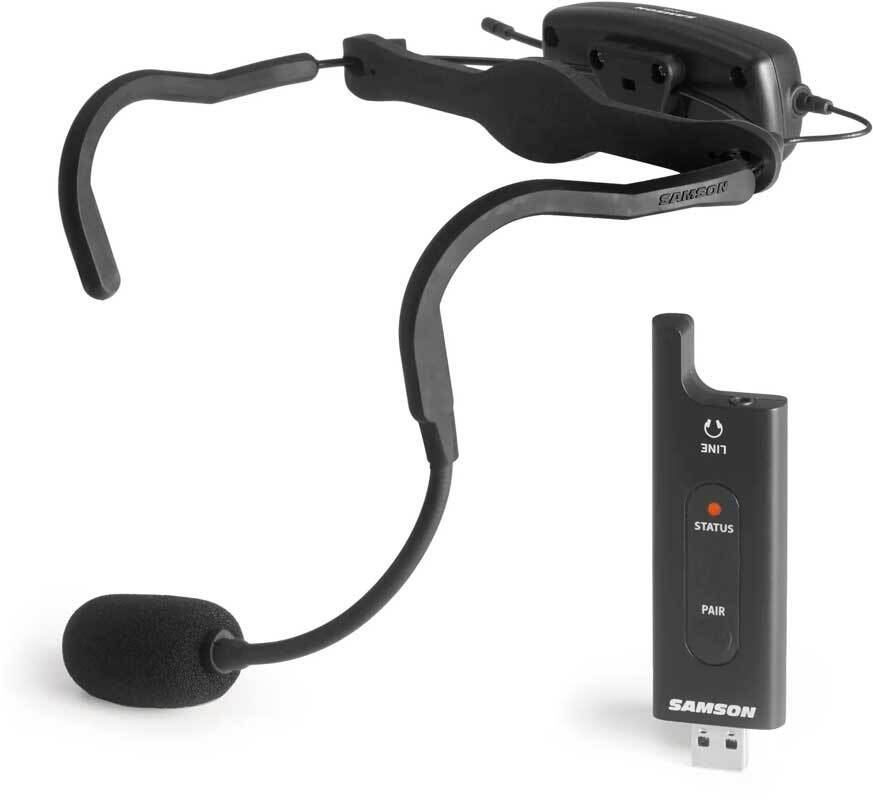Samson AIRLINE XD Цифровая головная радиосистема, 2,4ГГц, передатчик встроен в оголовье, компактный USB Stick приемник, доп.выход 3,5мм, переходник USB С для моб.устройств, дистанция 30м.