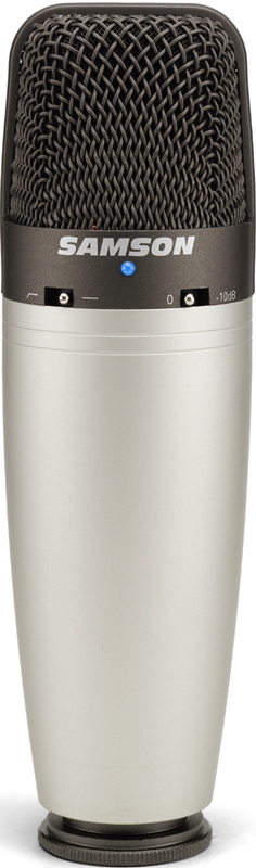 Samson C03 - студийный конденсаторный. микрофон, супер кардиоида, 40-18000 Гц, max SPL 142dB, динамический диапазон 119dB, 350 ом, вес 460 грамм.