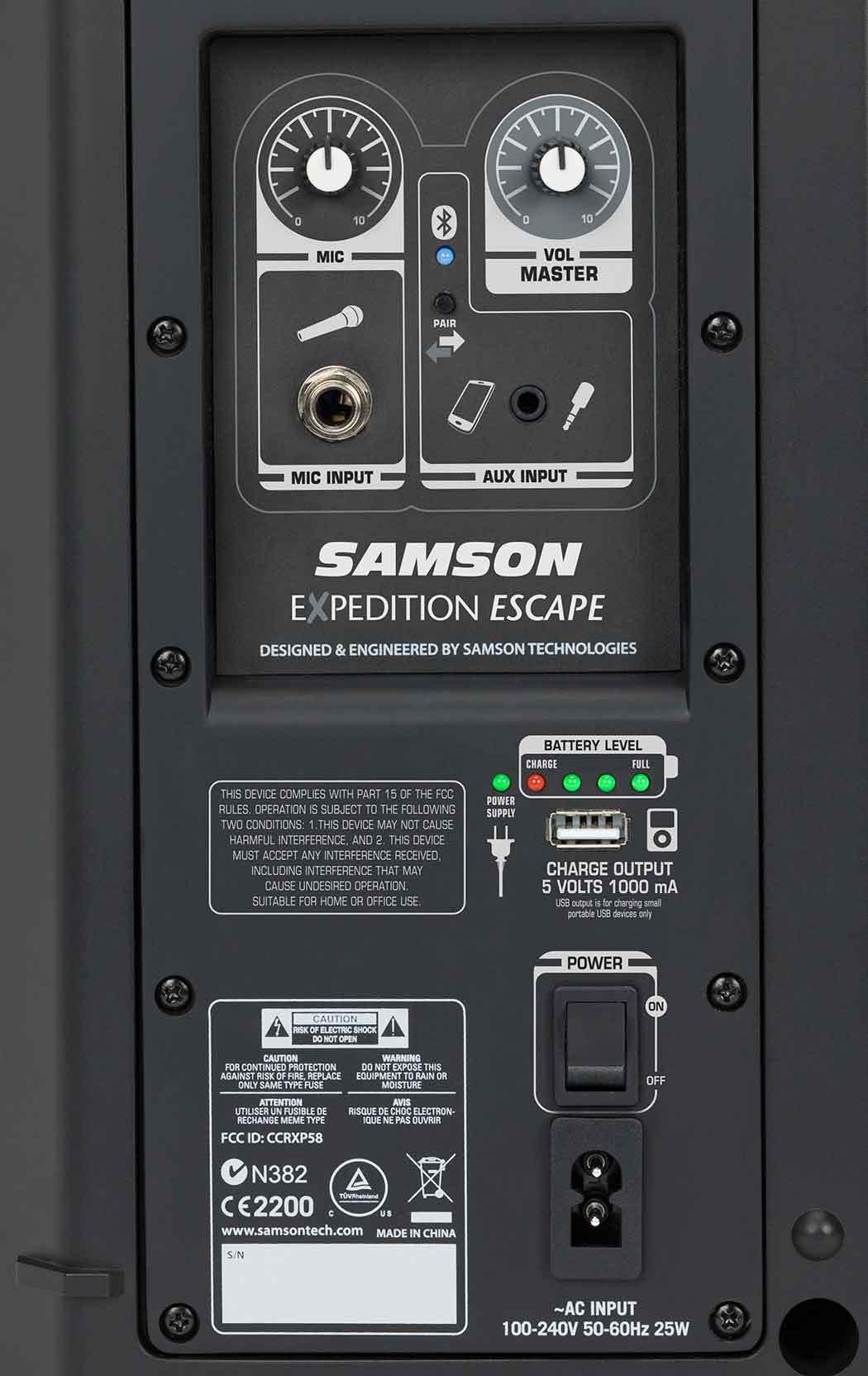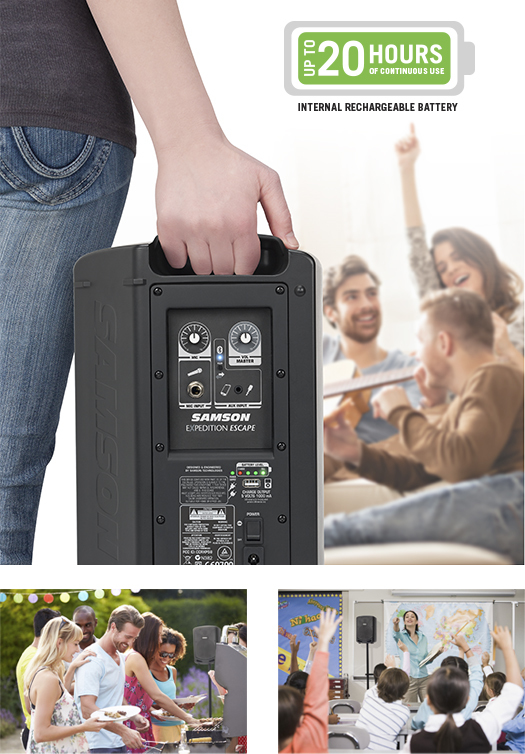 Samson Expedition Escape - это перезаряжаемая акустическая система, которая обеспечивает невероятный звук в любых условиях. При весе всего-лишь около 4 кг, это ультра портативное устройство совмещает в себе безупречное качество аудио вместе с удобным соединением по Bluetooth для беспроводной передачи аудио. Это идеальное решение для похода на шашлыки, вечеринок, различных спортивных мероприятий, презентаций, занятий по фитнесу, да и для любого места, где нужен громкий, полноценный звук.