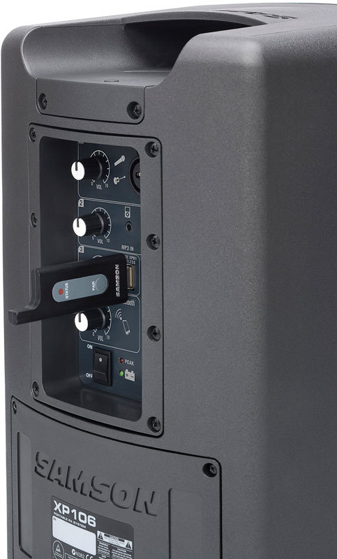 XP106 включает Stage XPD1 Цифровую беспроводную систему USB (безлицензионный рабочий диапазон 2,4ГГц), которая обладает беспроводным ресивером, встроенным в USB-накопитель, а также динамический микрофон с микрофонной капсулой Samson Q6. Аудио система XP106w способна дать полную свободу выступающему, больше не нужны провода и проблемы с ними. Bluetooth соединение обеспечит вам удобство использования микрофона Stage XPD1 вместе с аудио системой XP106w, а 20 часов автономной работы дадут вам почувствовать полную независимость от обстоятельств.