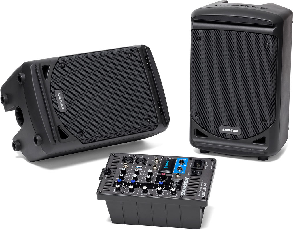 Samson Expedition XP300 — это полнофункциональная звуковая система, обладающая отличным качеством звучания, высокой мобильностью и небольшим весом. Суммарная мощность комплекта — 300 Вт, которую выдают 6-канальный активный микшерный пульт и две широкополоные акустические системы на базе 6" НЧ-излучаталей. Высокая мобильность XP300 также обеспечивается специальными элементами, которые позволяют соединить все компоненты в единый блок, который весит чуть больше 10 кг.