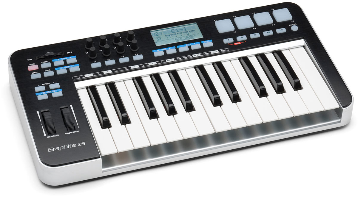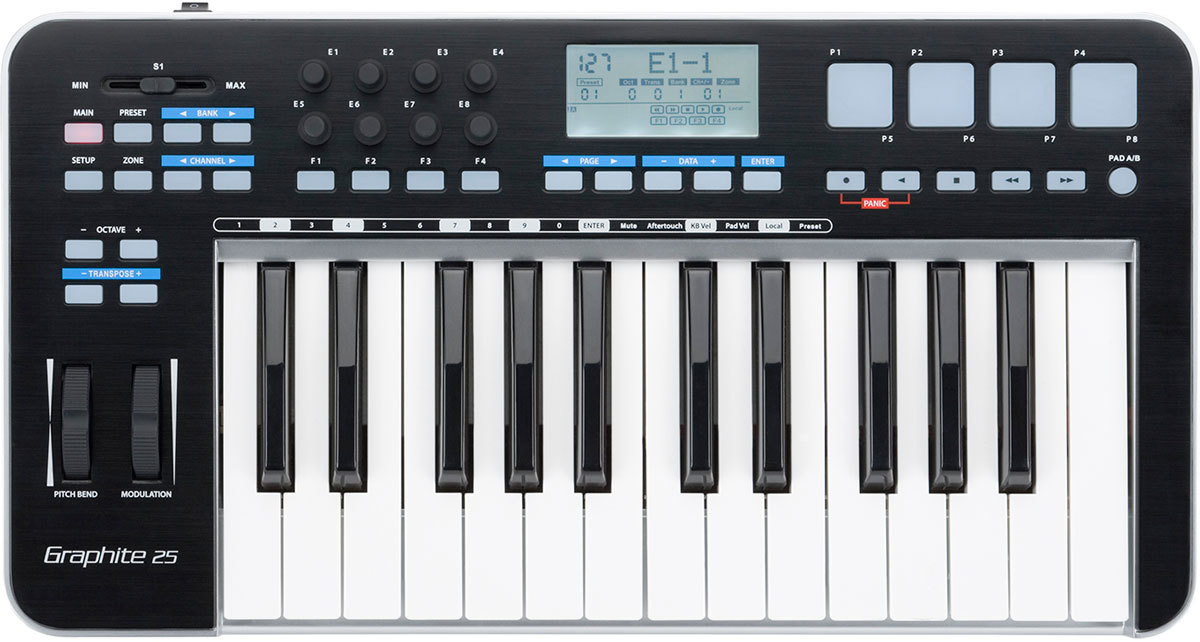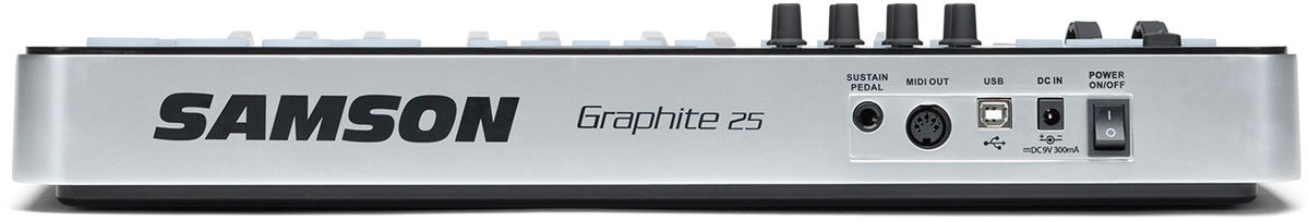 Graphite 25 очень прост в использовании. Благодаря полному контролю за ПО и ощущению настоящего инструмента, которое так ценится и профессионалами и любителями по всему миру Samson Graphite 25 USB/MIDI-контроллер найдёт своё достойное место и на сцене и в студии.