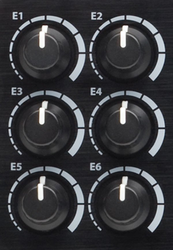 - Программируемые мастер энкодер, шесть кнопок параметров и кроссфейдер