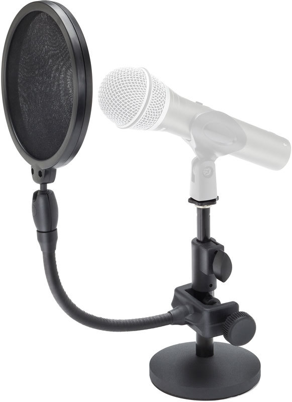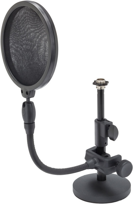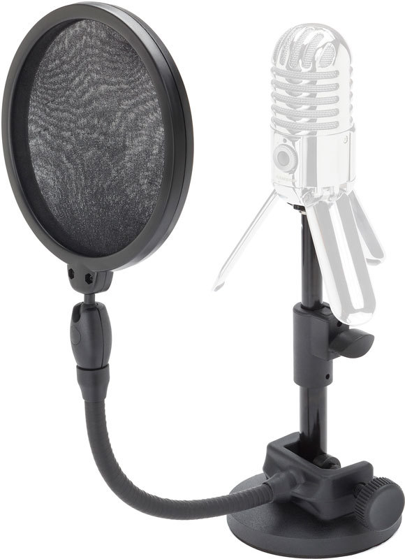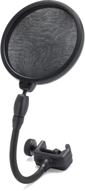 Поп-фильтр для микрофона PS05 оснащен двухслойным экраном из нейлоновой сетки диаметром 12 см, который снижает звуки взрывные согласные типа "б" и "п", возникающие во время речи и пения, а также защищает микрофон от слюны.