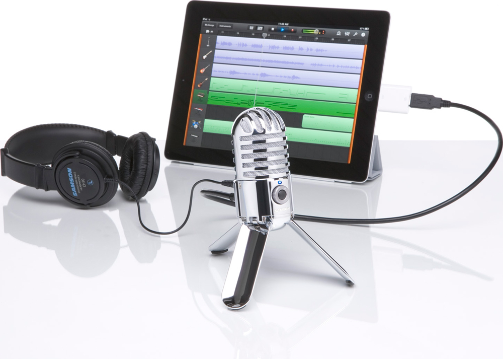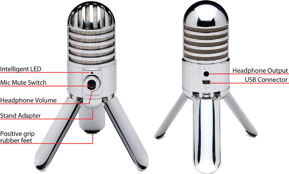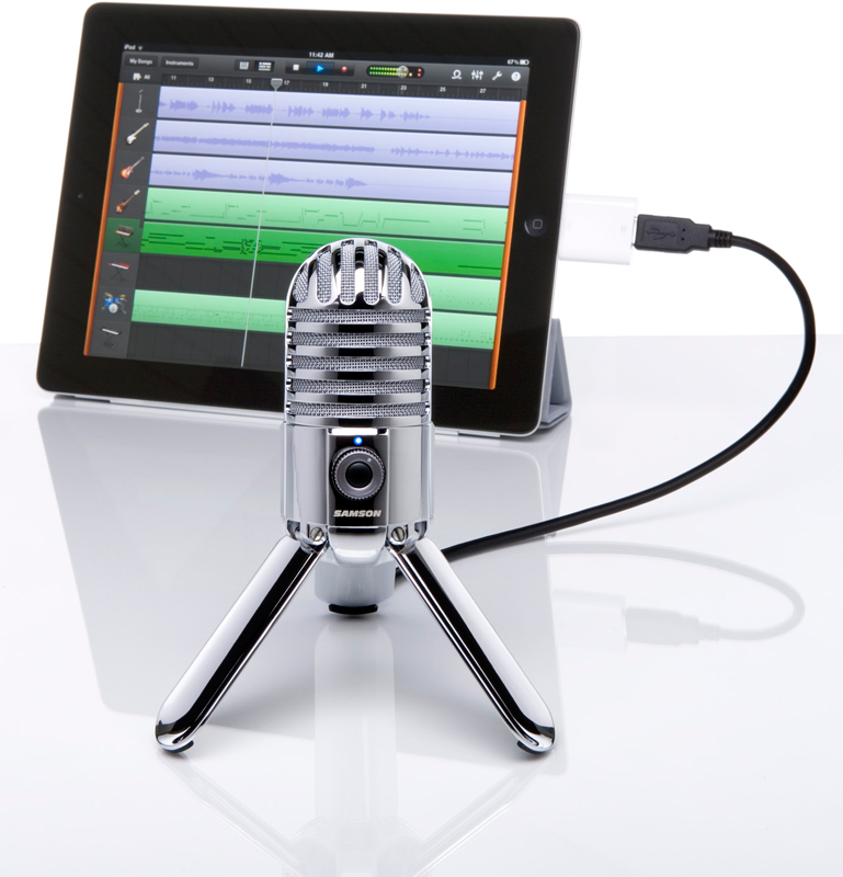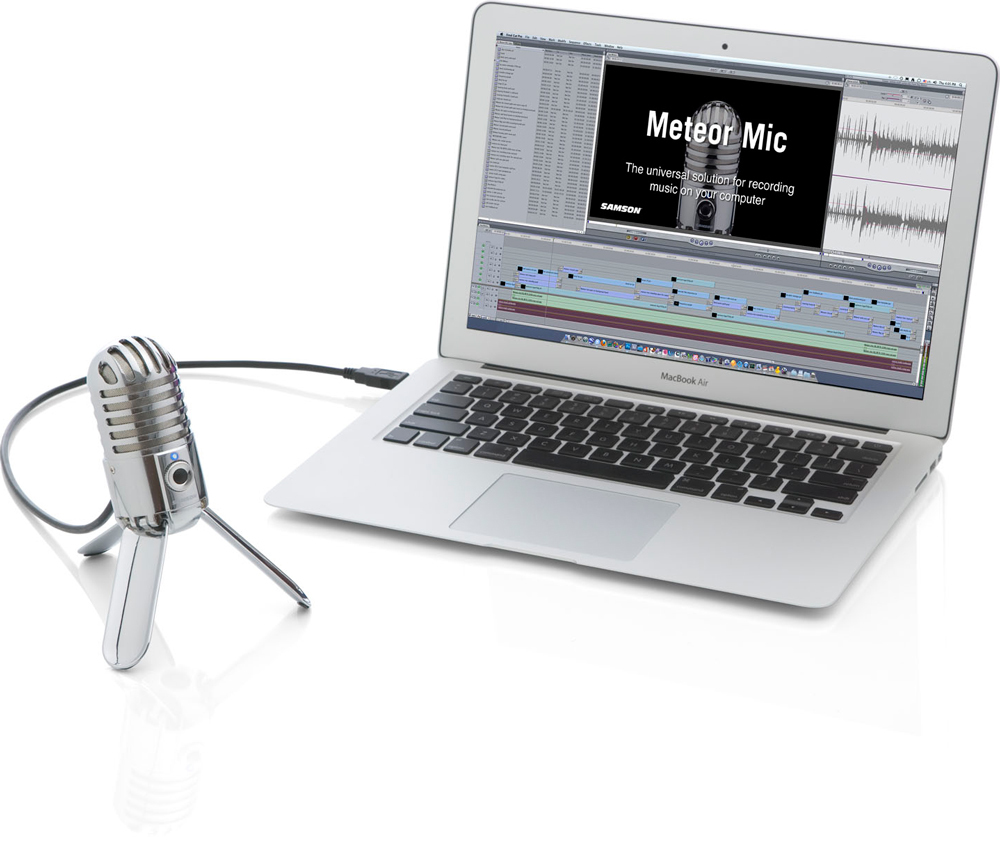 Встречайте! Samson Meteor Mic. Вся прелесть этого микрофона в том, что это – USB-микрофон. Ему не нужен микшерный пульт, куча длинных проводов, предусилитель… Всё,что требуется – подключить его к компьютеру при помощи USB-кабеля. Всё. Можно начать запись. Нет, драйвера ему тоже не требуются. Микрофон поддерживает почти все цифровые рабочие аудио-станции, прекрасно работает в Skype, iChat или программах распознавания голоса.