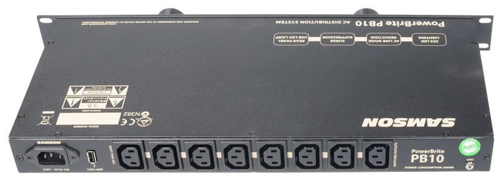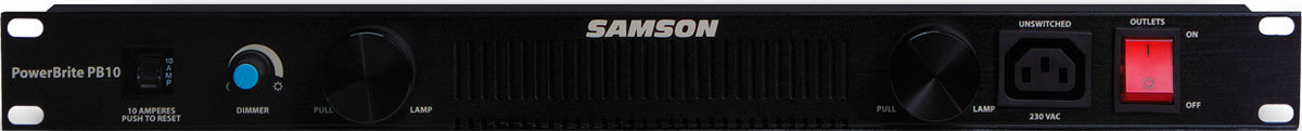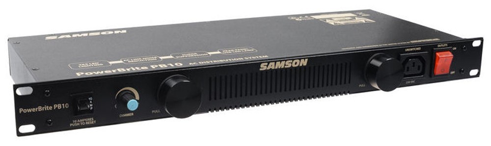 Samson Powerbrite PB10 рэковый фильтр сетевого питания на 9 приборов, две лампы подсветки, регулировка яркости подсветки, выключатель на передней панели (4 кабеля в компл.), Samson