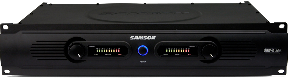 Samson Servo 600 студийный усилитель мощности, 2х300W/4 Ома, 600 ватт в мостовом режиме на нагрузке 8 Ом, частотный диапазон: (+/-3 дБ): 10 Гц - 85 кГц, высота 2U. SAMSON