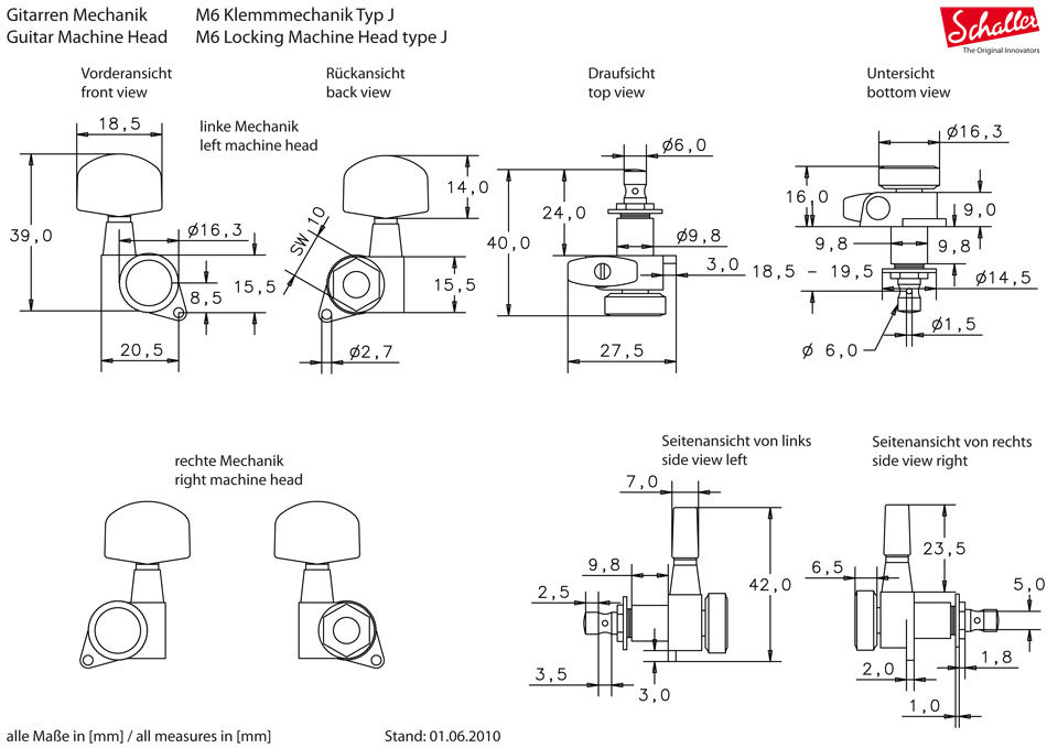 Серия M6 2000. Классика от Шаллер! Наиболее популярная классическая серия колков! Используется более чем на 7 миллионах инструментах! Высочайшее качество и точность настройки! Износостойкость! Шаллер-первая в мире компания, разработавшая и запатентовавшая колки с системой запирания"Locking" (струна вставляется в камеру с ослабленным зажимным винтом, который затем фиксируется и обеспечивает нужную настройку струны на длительный срок). "Самоблокирующаяся" конструкция позволяет осуществлять "деликатную" и устойчивую настройку. Менять струны можно быстро и просто! Колки данной серии идеальны для систем "non-locking tremolo". Все колки покрываются специальной защитной смазкой, разработанной компанией Шаллер.