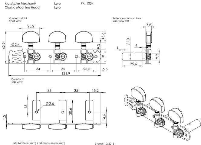 Вал колковой механики изготовлен из высококачественной латуни и установлен в корпус с максимальной точностью, что обеспечивает наибольшую точность настройки и износостойкость.