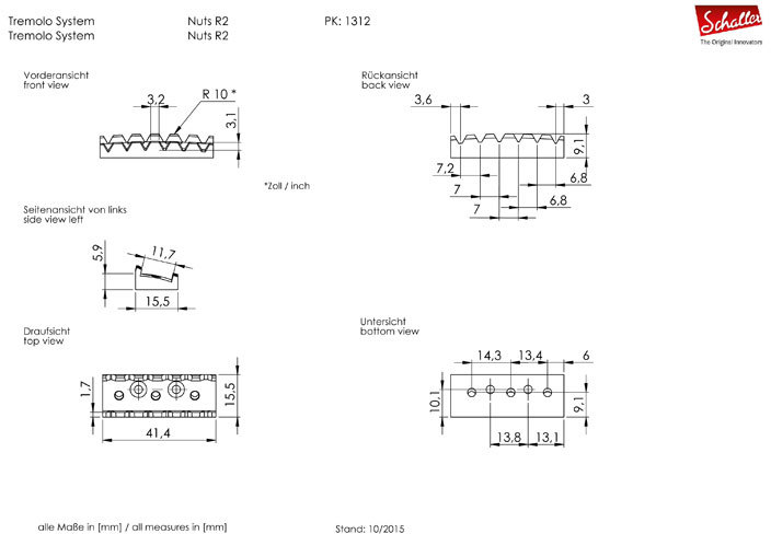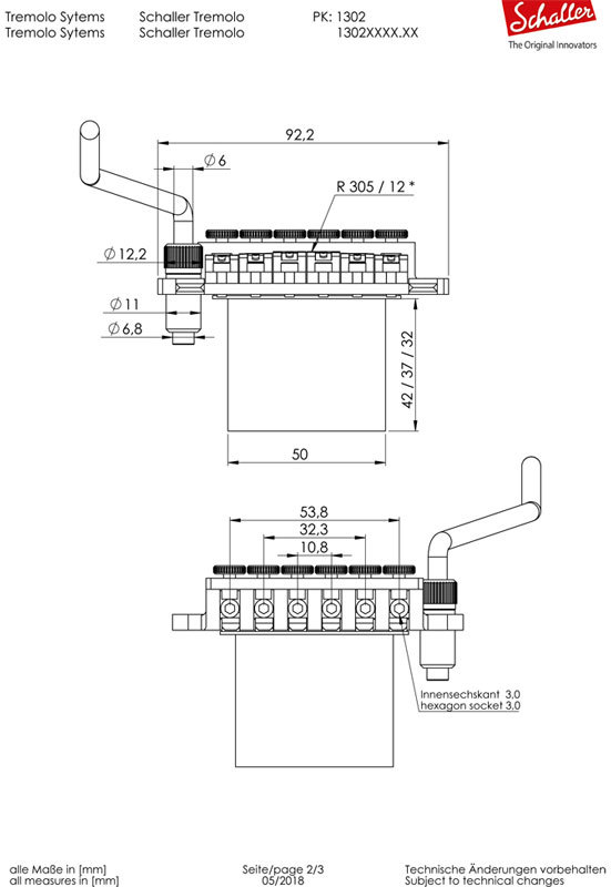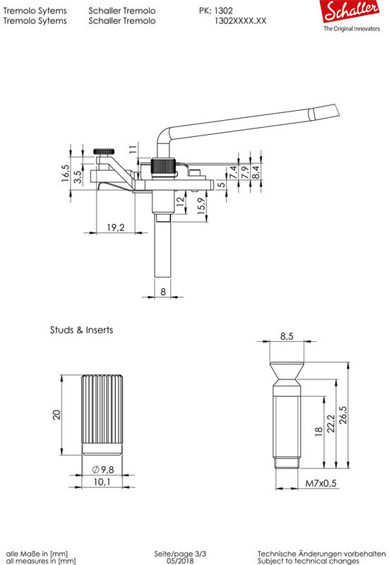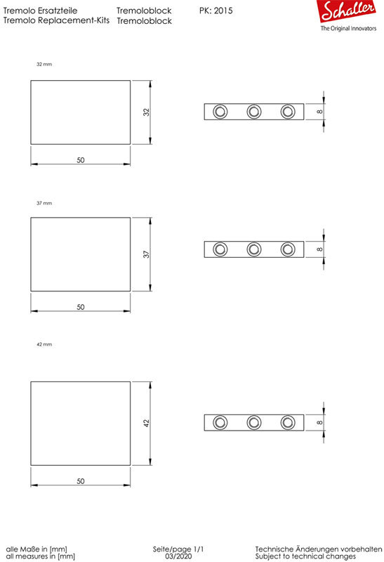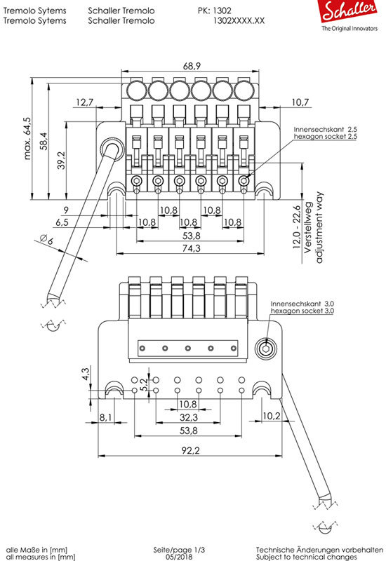 Размеры тремоло Schaller Tremolo в точности повторяют размеры бриджей Floyd Rose Tremolo и LockMeister, что позволяет легко заменить их.