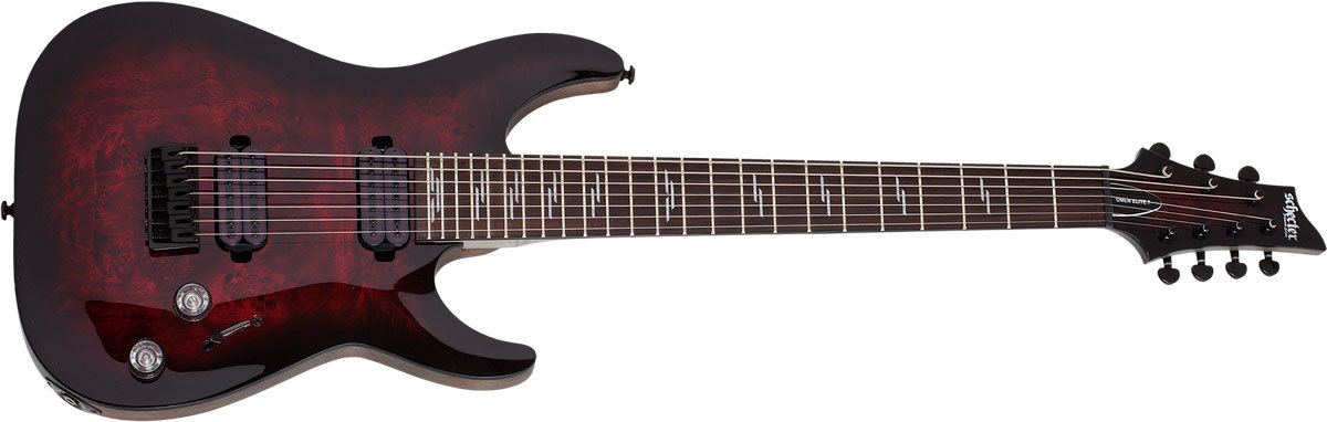 Schecter OMEN ELITE-7 BCHB - электрогитара, 24 лада, корпус: махагон c топом из капа, гриф: клён, накладка: палисандр, звукосниматели: HH Schecter Diamond Heretic, регулировки: громкость, тон, 5-ти позиционный переключатель, цвет: Black Cherry Burst (BCHB)