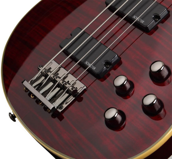 Самое распространенное дерево для накладки, палисандр, маслянисто по своей природе и прекрасно подходит для любых поверхностей, часто контактирующих с человеком. Звукосниматели Schecter Diamond Bass вместе с двухполосным активным эквалайзером эти датчики выдают такие мощнейшие низы, что смогут расшатать Царя Грозы на его троне! Эквалайзер позволяет рулить раздельно уровень высоких и низких частот, а ручка Blend поможет получить необходимый баланс в миксе сигналов некового и бриджевого датчиков. Керамический магнит с эпоксидным покрытием для пожизненной защиты.