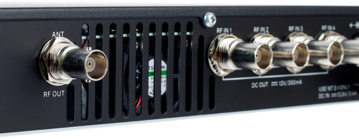 До 4 беспроводных стереопередатчиков с использованием одной антенны. Питание через кабели BNC крайне эффективно, нет необходимости в дополнительных блоках питания для SR IEM G4. Совместим с системами G4 и G3.