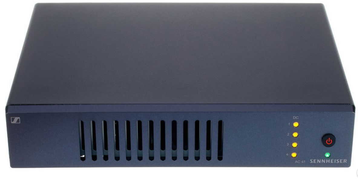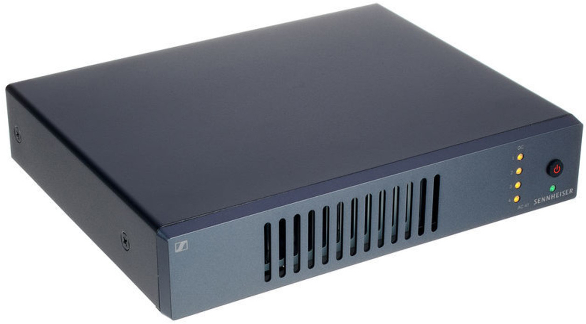 Активный антенный комбайнер для беспроводных систем evolution G4. Комбайнер AC 41 работает с четырьмя беспроводными стереопередатчиками серии ew, используя одну общую антенну. Питание подается на передатчики SR IEM G4 через кабели BNC через источник питания NT 3-1 (входит в комплект поставки AC 41), что делает отдельные источники питания для передатчиков не нужными.