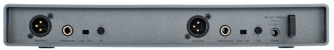 Приемник EM-XSW 1 DUAL представлен в корпусе из прочного ABS-пластика, на лицевой панели которого находятся простые органы управления радиосистемой. Для каждого из каналов есть индикация статуса работы и заряда батареи, клавиши для активации синхронизации ресивера с трансмиттерами, а также ЖК-дисплей, отображающий актуальные настройки. Для качественного приема сигнала ресивер оснащен двумя внутренними антеннами, а для вывода звука на акустическую систему есть два балансных выхода на разъемах XLR и два небалансных выхода на разъемах 1/4'' Jack TS. Для последних предусмотрено два режима работы – линейный и микрофонный. Энергообеспечение происходит с помощью адаптера на 12V DC.