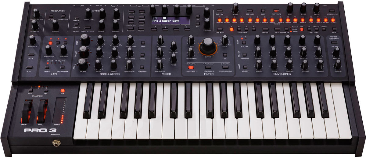 Pro 3 имеет три генератора, три винтажных фильтра, три LFO, четыре огибающих, массивную 32-слотовую мод-матрицу и секвенсор 16 x 16 x 4. Добавьте двойные цифровые эффекты и четыре входа и выхода управляющего напряжения, и вы получите чрезвычайно мощный увлекательный инструмент.