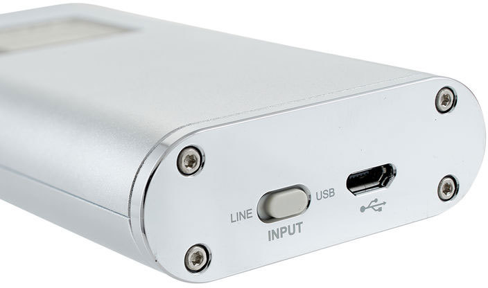 - Обработка цифрового или аналогового сигнала на выбор: переключатель входов "USB" для цифрового сигнала; и "Line In" — стандартный линейный вход (3.5 мм) для аналогового сигнала
